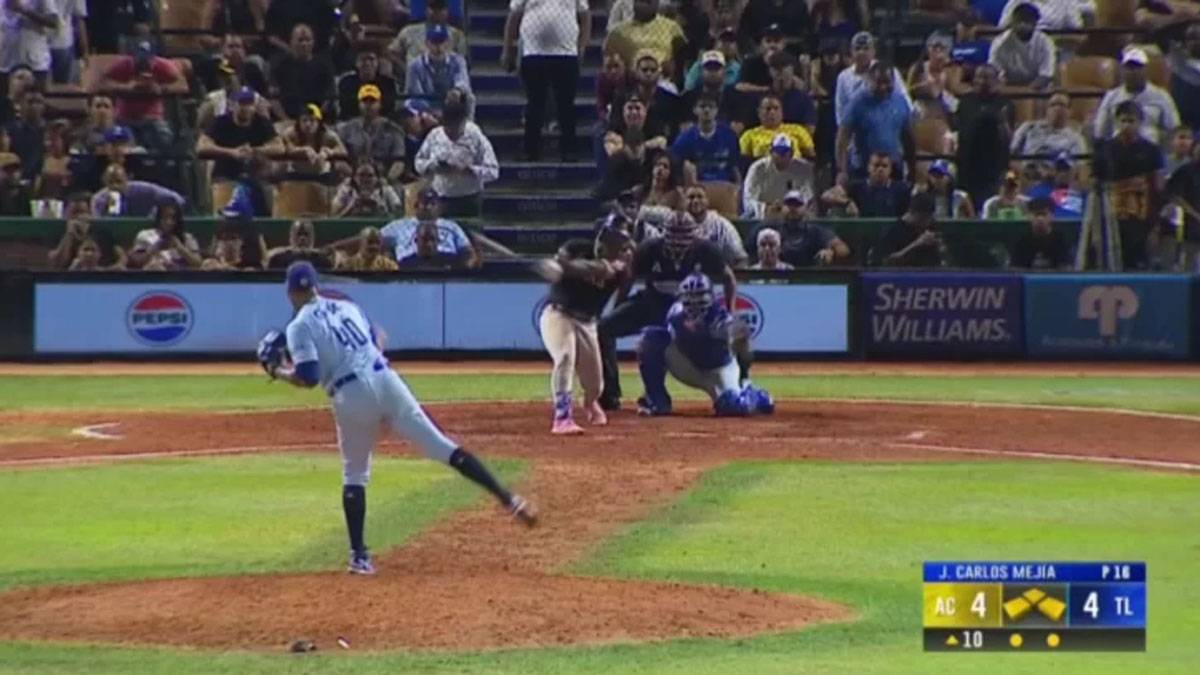 Las Águilas Cibaeñas mantuvieron su dominio luego de un sólido batazo de línea hacia el prado derecho conectado por Adael Amador, remolcando las dos carreras que rompieron la igualdad 4-4 en la décima entrada. El batazo llegó ante un sinker de JC Mejía, quien no pudo contener la ofensiva mamey en un momento de máxima presión.