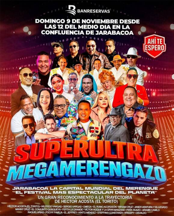 Además, el SuperUltraMegaMerengazo Jarabacoa 2025 está apoyado por Banreservas, Fedomu, la alcaldía local y diversas instituciones que promueven el arte y la cultura dominicana.