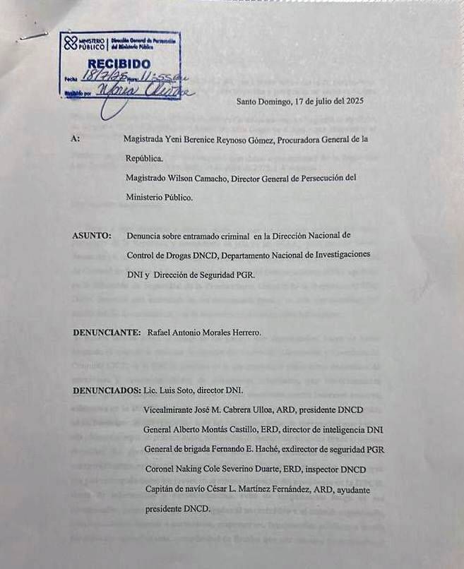 El exdirector de Asuntos Internos de las Fuerzas Armadas, Rafael Antonio Morales Herrero, denunció ante la Procuraduría General de la República un presunto entramado criminal integrado por altos mandos de la Dirección Nacional de Control de Drogas (DNCD), el Departamento Nacional de Investigaciones (DNI) y la Dirección de Seguridad de la PGR, a quienes acusa de corrupción, narcotráfico y persecución interna.