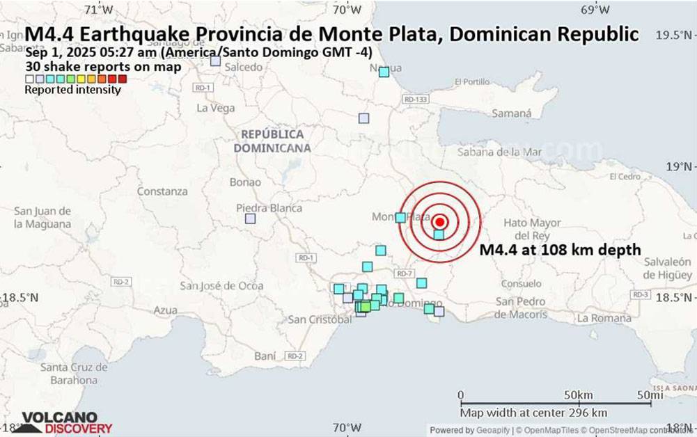 SANTO DOMINGO, República Dominicana.- Un sismo en Bayaguana, Monte Plata sorprendió esta madrugada, el temblor de magnitud 4.6 en la escala de Richter sacudió la zona a las 5:27 a.m. del lunes 1 de septiembre de 2025. El epicentro se localizó a 14 km al norte del municipio, en la provincia Monte Plata, según informó el Centro Nacional de Sismología de la UASD.
